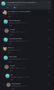 | 08:20, 5 February 2026 | IShowGore (censored).mp4 (file) | 679 KB | ||